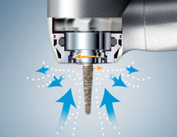 Mantiene automáticamente los fluidos orales y otros contaminantes fuera de la cabeza del instrumento prolongando así la vida de los instrumentos y garantizando un tratamiento más higiénico.